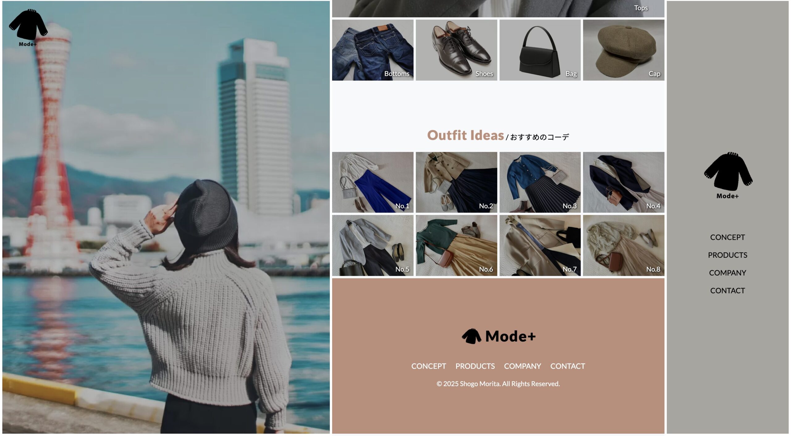 このページは、ファッション雑誌のような世界観を再現したランディングページ(LP)のデモサイトです。HTMLとCSSのみで構成されており、ビジュアル重視のWebデザインを学びたい方に最適です。
